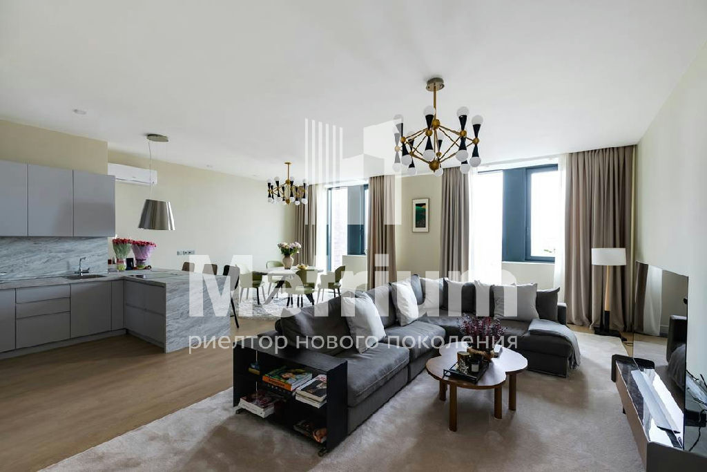 Интерьер выполнен с использованием качественных натуральных материалов. Квартира меблирована, оборудована современной бытовой техникой и готова к проживанию.