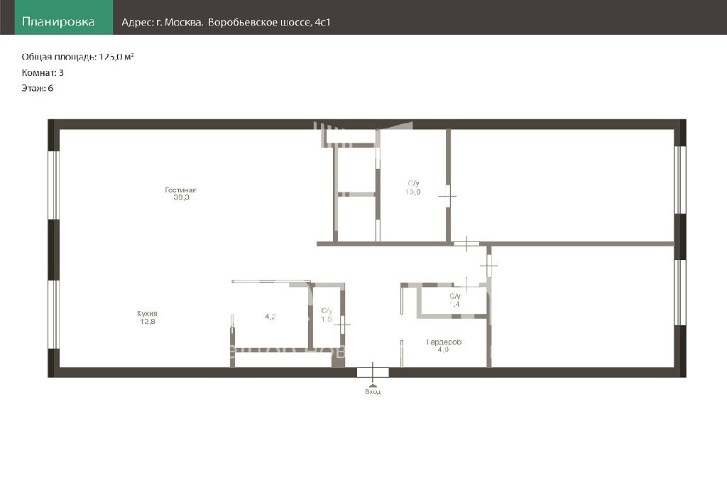 Общая: 124,7 м2